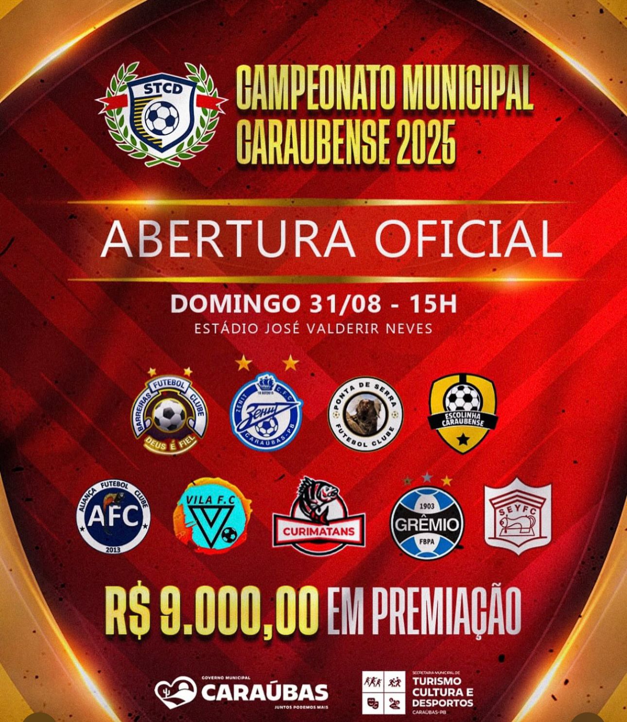 A Prefeitura Municipal de Caraúbas, através da Secretaria de Turismo, Cultura e Desportos, dará início ao Campeonato Municipal de Futebol 2025.